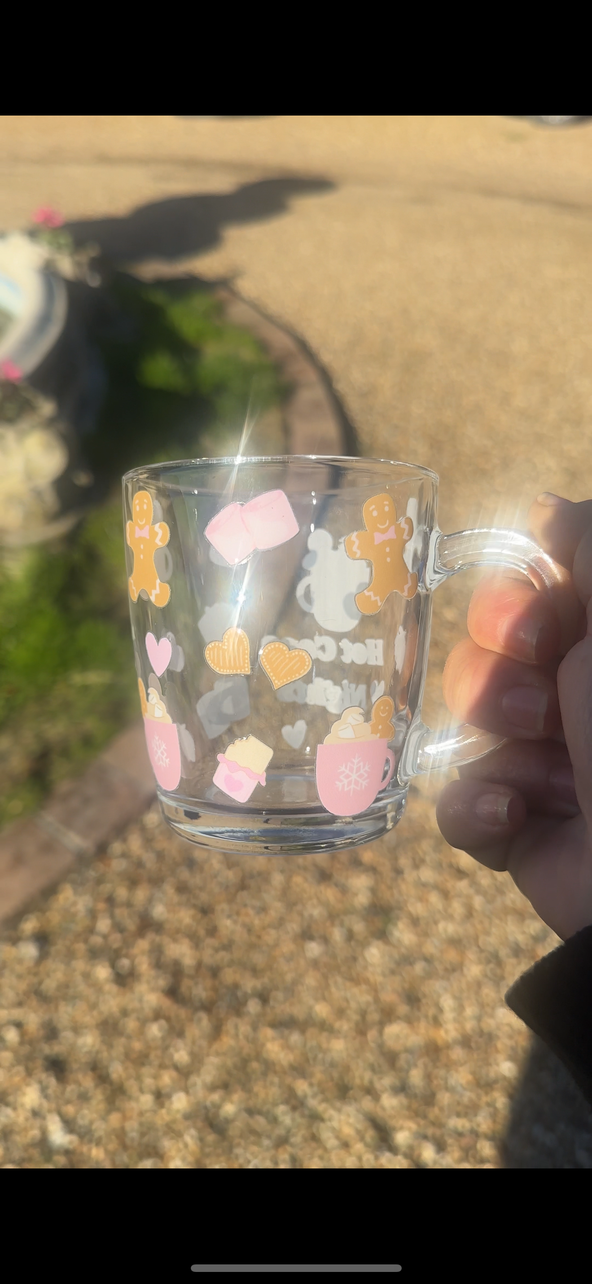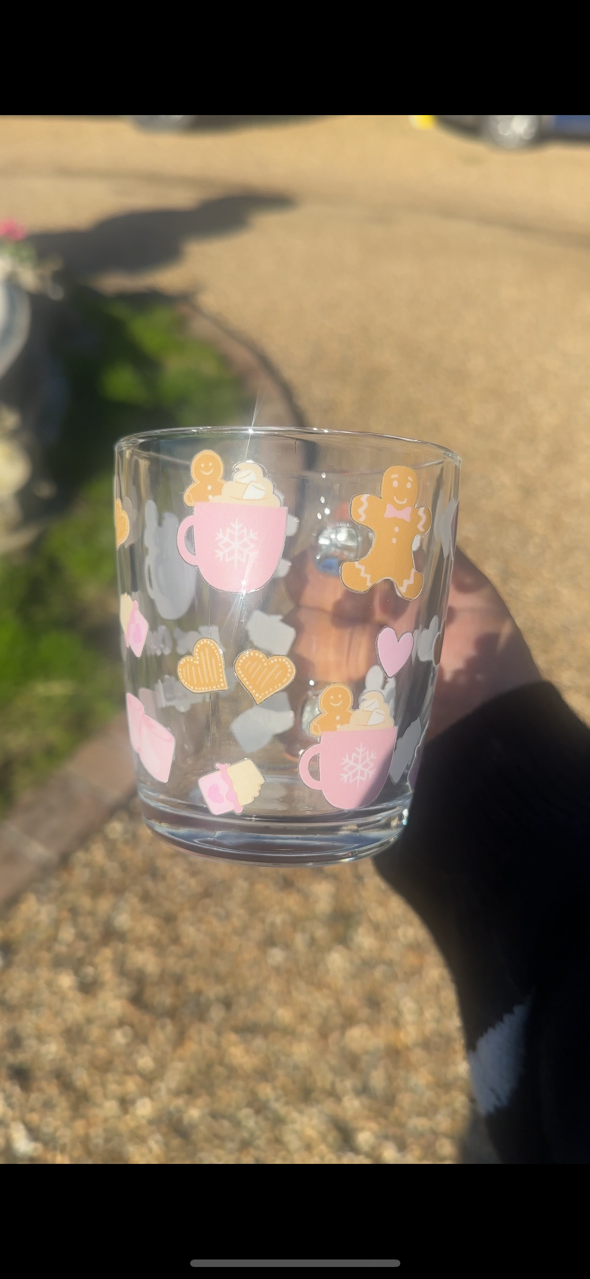 Pink Christmas gingerbread glass mug