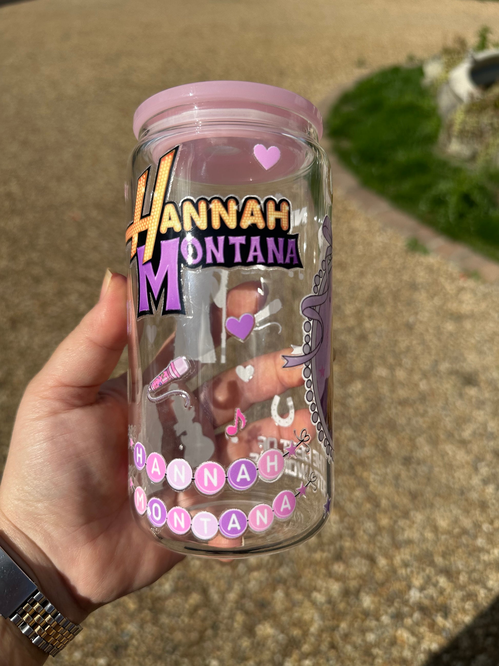 Hannah Montana glass up , designed my myself and handmade. Comes with pink lid and clear straw.