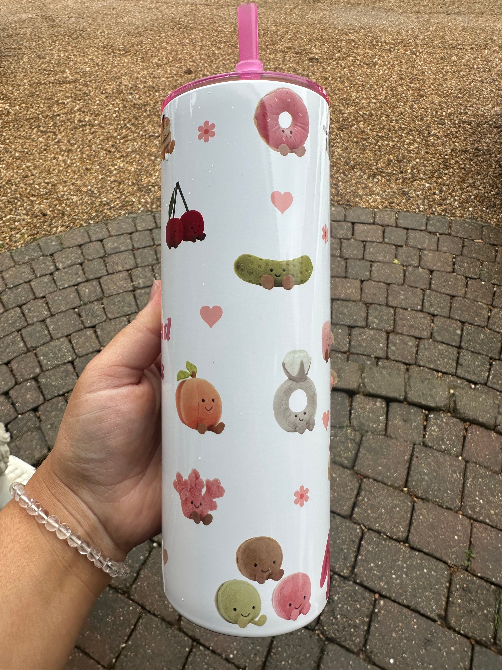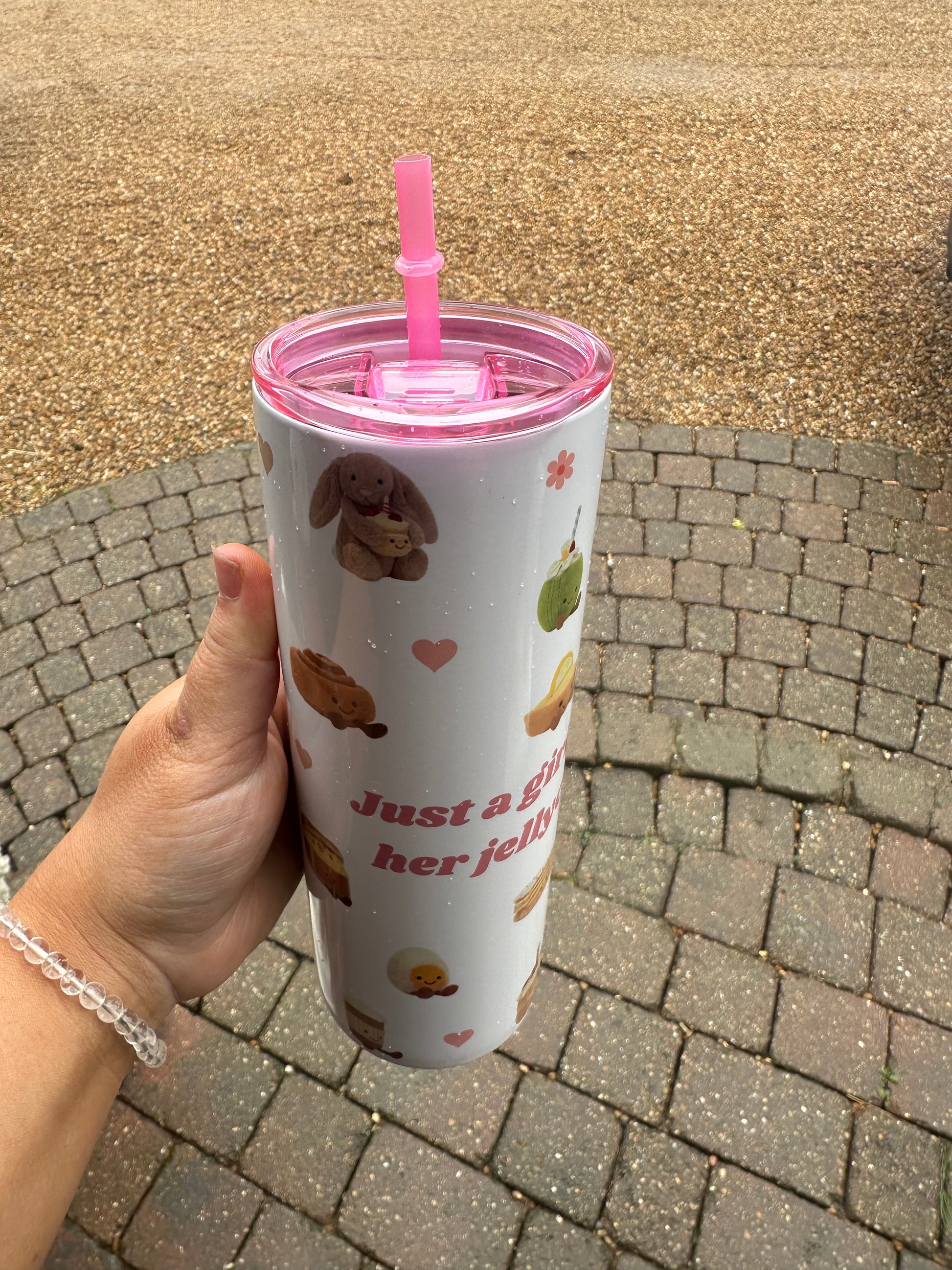 Jellycat inspired stainless steel tumbler , comes with options of clear lid and straw or pink straw.